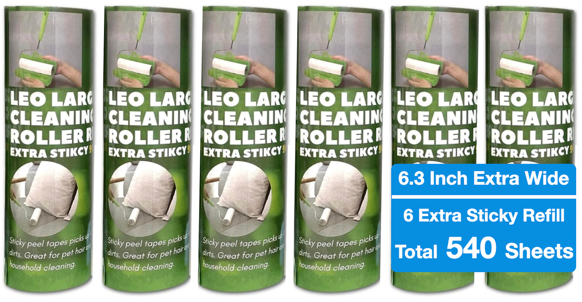 6.3 Inch Wide Lint Roller Refills for Pet Hair – 6 Pack (540 Sheets) | LEO