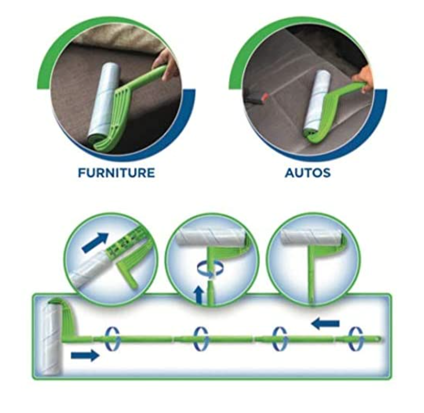 • Ultra-sticky adhesive sheets pick up pet hair, lint, and dust effectively